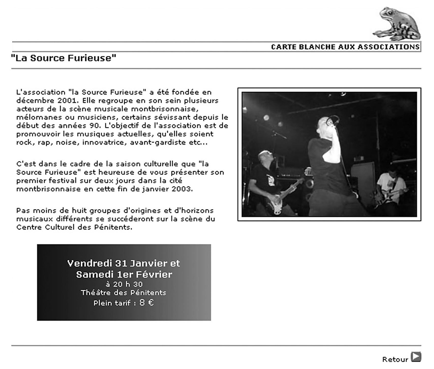 était un projet de mécénat consistant à faire découvrir les groupes de la région Montbrisonnaise. Un ou deux concerts gratuits étaient organisés chaque année en partenariat avec la Ville de Montbrison et les studios d’enregistrement des environs (Le Nautilus et le Studio E). Quelques temps après sortait un CD compilant toutes ces formations , une centaine de copies étaient offertes aux groupes pour diffuser gratuitement leurs créations.